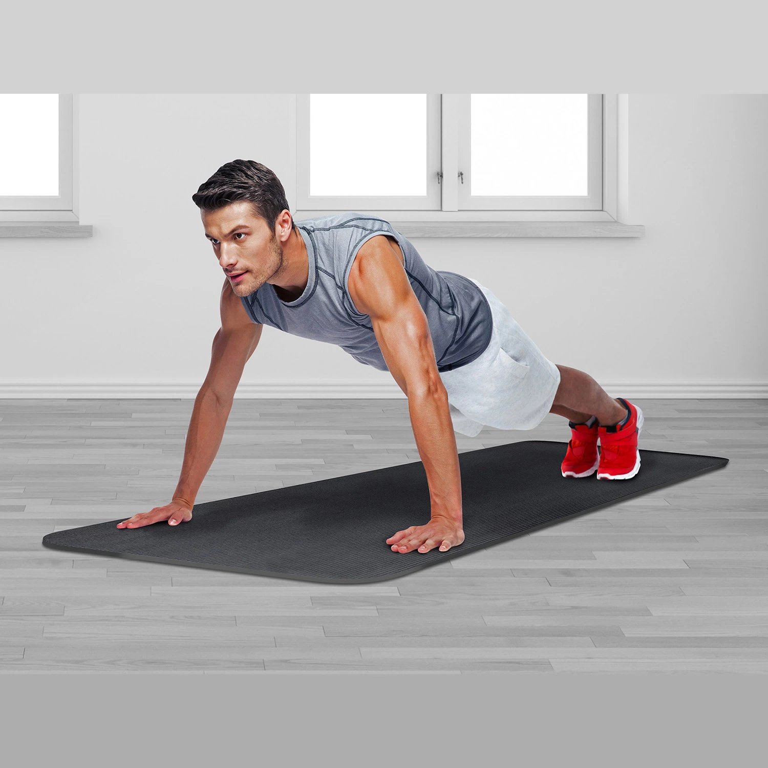 This Multi-Purpose Comfort Exercise Mat is great for all types of floor workouts. Extra thick and infused with Microban® antimicrobial product protection.